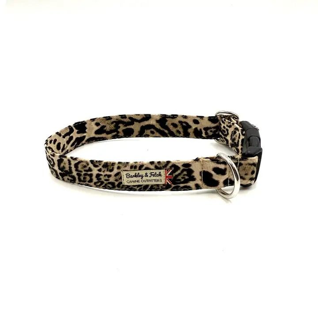 Elevate your furry friend's style with the gorgeous Leopard Print Collar from Barkley & Fetch. Handmade in the UK with strong polyester webbing, this adjustable collar ensures the perfect fit for your pet. The secure clip fastening and welded heavy-duty d-ring provide added safety and durability. With adjustable lengths, this collar can grow with your pet. Pair it with the matching lead for a complete look. Treat your beloved companion to a collar that combines style, functionality, and quality. Perfect for daily walks, outings, or simply showing off your pet's unique personality.