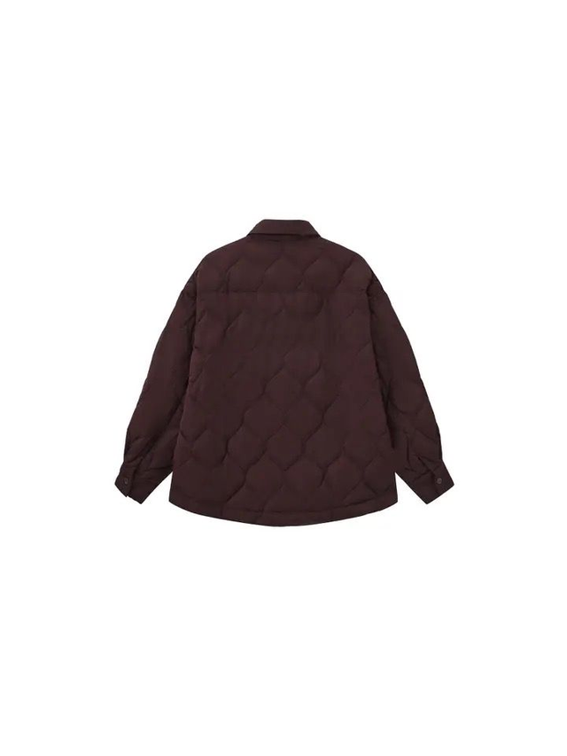 Experience ultimate warmth and style with this gourd-shaped quilted down jacket, filled with 90% white duck down for superior insulation. The unique quilting design ensures an even distribution of down, providing lasting comfort without bulk. Inspired by classic shirt silhouettes, this jacket features a structured collar and button-front closure, perfectly blending casual elegance with functional warmth. Ideal for layering, it offers practical side seam pockets to keep your essentials close on chilly days. Whether for everyday wear or outdoor adventures, this versatile piece combines the relaxed charm of a shirt with the cozy benefits of a premium down jacket. Stay warm, stylish, and comfortable all season long.