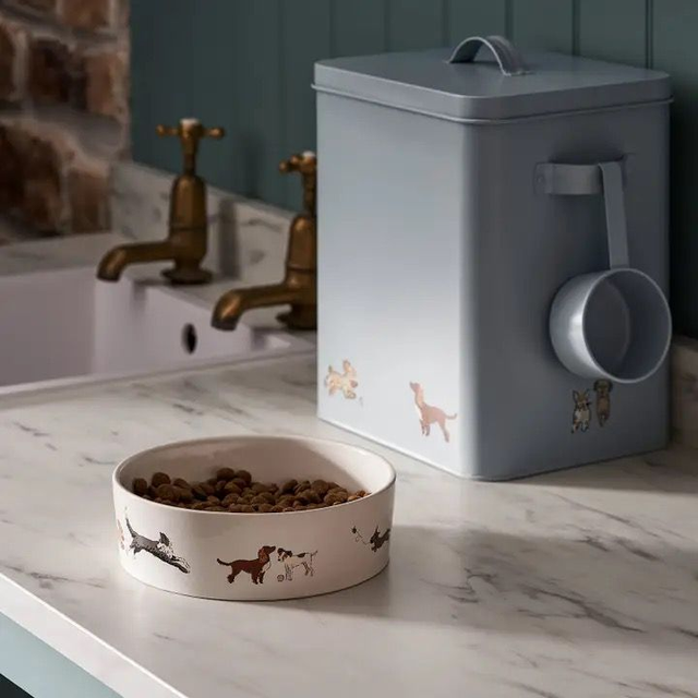 Treat your beloved pet to the Sophie Allport Dog Bowl, featuring charming illustrations of popular dog breeds on the exterior and a subtle bone design inside. Crafted from durable stoneware, this bowl is perfect for serving both food and water. Available in two convenient sizes - Small (H 5 x Dia. 13cm) and Large (H 6 x Dia. 20cm) - it suits dogs of all sizes. Practical and stylish, the bowl is microwave and dishwasher safe, making it easy to clean and reheat meals if needed. Add a touch of whimsy to your pet’s dining experience with this adorable, functional bowl from Sophie Allport.