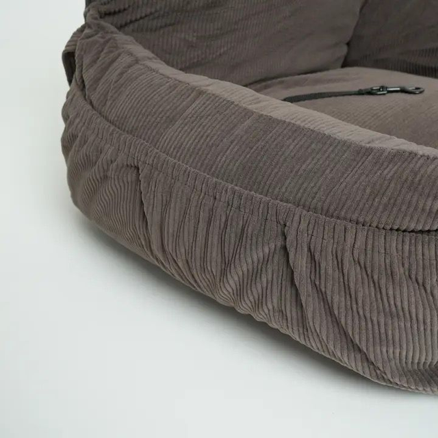 Travel in comfort and style with the Staey Lara 3-in-1 Dog Car Seat, designed for small to medium dogs up to 18 kg. Crafted from luxurious corduroy fabric, this versatile seat doubles as a cozy dog bed, secure car basket, and convenient travel bag. Measuring 58 x 58 x 42 cm, it fits perfectly in your car and home. Easy installation features adjustable straps and a built-in safety leash, plus non-slip bottom ensures stability during trips. Removable, machine-washable covers keep it fresh, while side pockets and an adjustable front cushion add practicality and comfort. Elevate your dog’s travel experience with the stylish, safe, and multi-functional Staey Lara car seat.