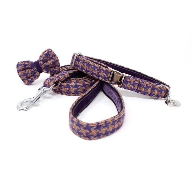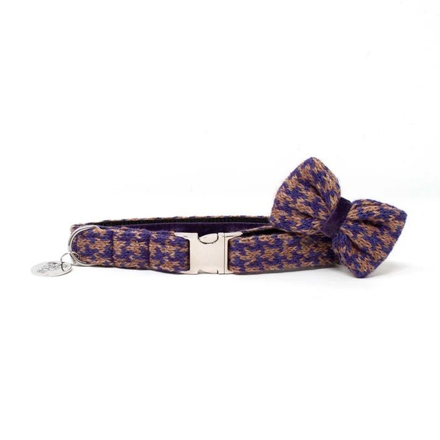 Indulge your furry companion with the highest quality handcrafted dog collar from Stocky & Dee. This luxurious collar features a blend of Merino Lambswool and cotton, backed with soft velvet for comfort. With inner polypro webbing for strength, stainless steel Tri-Glide & D-Ring, and a durable aluminum buckle, this collar is both stylish and durable. Available in sizes to suit all breeds, this elegant collar is perfect for any fashionable pup looking to stand out. Treat your four-legged friend to the ultimate in comfort and style.