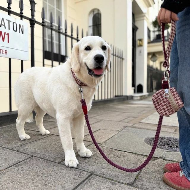 Indulge your furry companion with the highest quality handcrafted dog collar from Stocky & Dee. This luxurious collar features a blend of Merino Lambswool and cotton, backed with soft velvet for comfort. With inner polypro webbing for strength, stainless steel Tri-Glide & D-Ring, and a durable aluminum buckle, this collar is both stylish and durable. Available in sizes to suit all breeds, this elegant collar is perfect for any fashionable pup looking to stand out. Treat your four-legged friend to the ultimate in comfort and style.